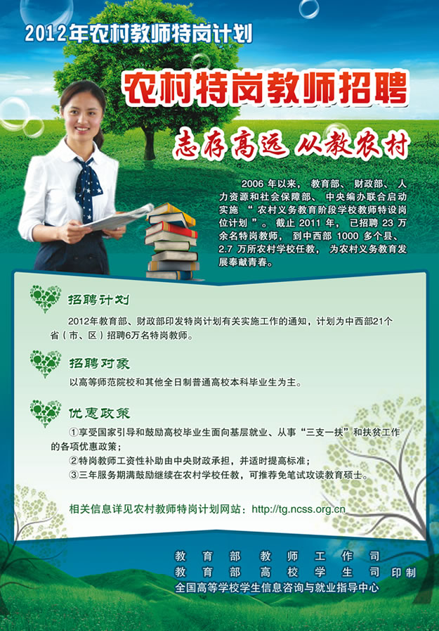 2012农村教师特岗计划农村特岗教师招聘公告