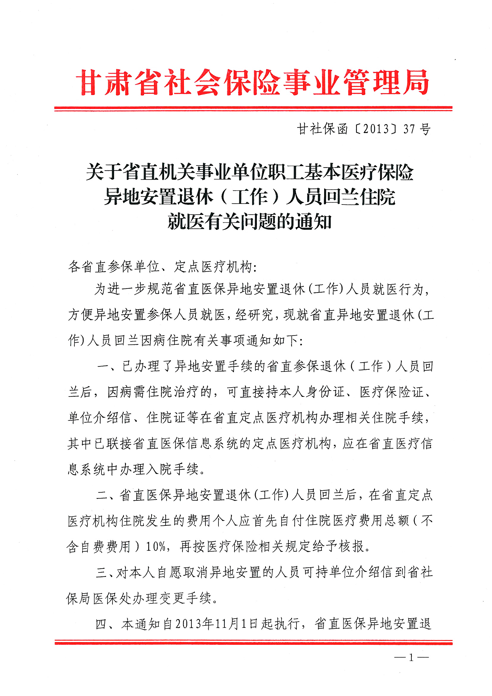 关于省直机关事业单位职工基本医疗保险异地安置退休(工作)人员回兰住院就医有关问题的通知