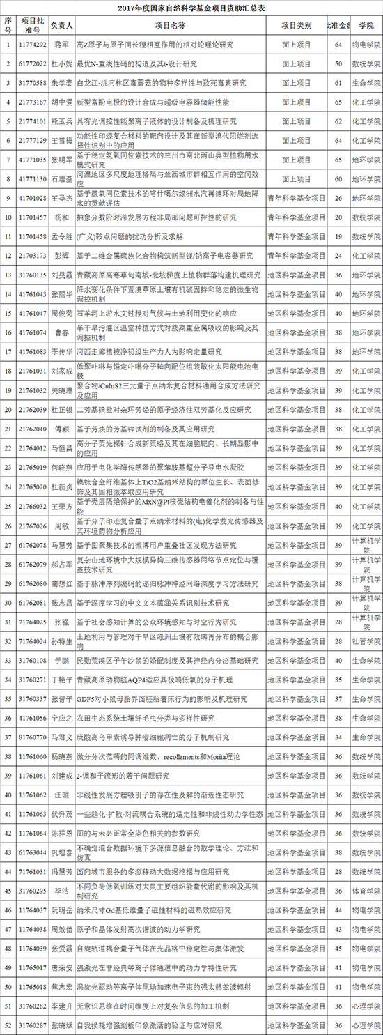 西北师大获批52项2017年国家自然科学基金项目