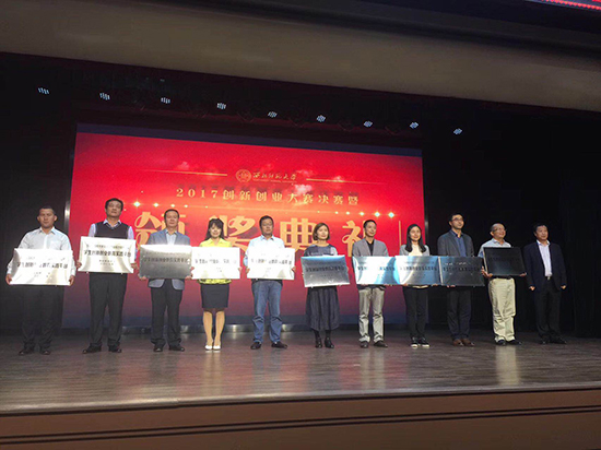 十支入围决赛的团队分别进行了现场项目路演、并接受了评委质询答辩。最终,商学院无线携手团队的创业项目《小棉袄》以其清晰的项目亮点、完备的商业计划书、准确的市场定位及务实的项目落脚点获得2017年大学生创新创业大赛特等奖;《赞赏旅行—旅游+社交+众筹社区》《OHO花粉速递》创业项目获得一等奖;《新型皮革鞣加脂剂的市场推广和应用》《基于VR技术的O2O平台开发及家装项目》创业项目获得二等奖;《美例优选特惠网》等五个项目获得三等奖;商学院、敦煌学院、化学化工学院荣获大赛优秀组织单位。